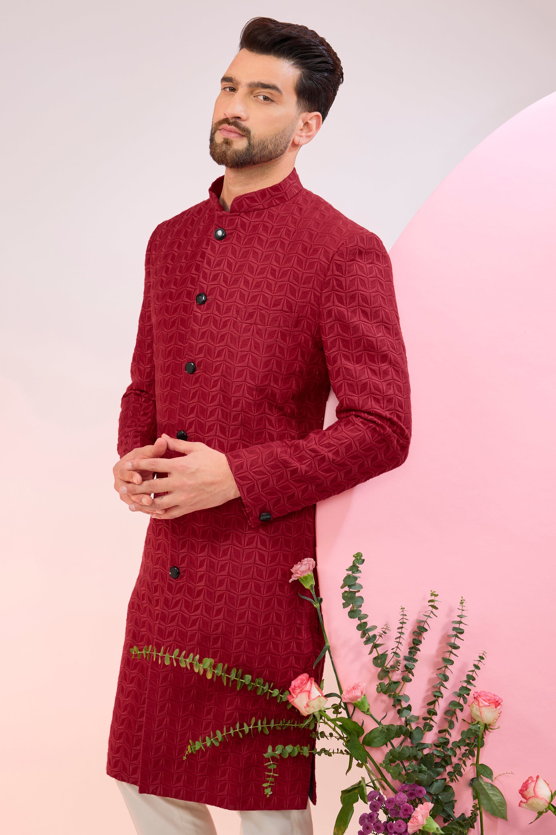 red thread work sherwani