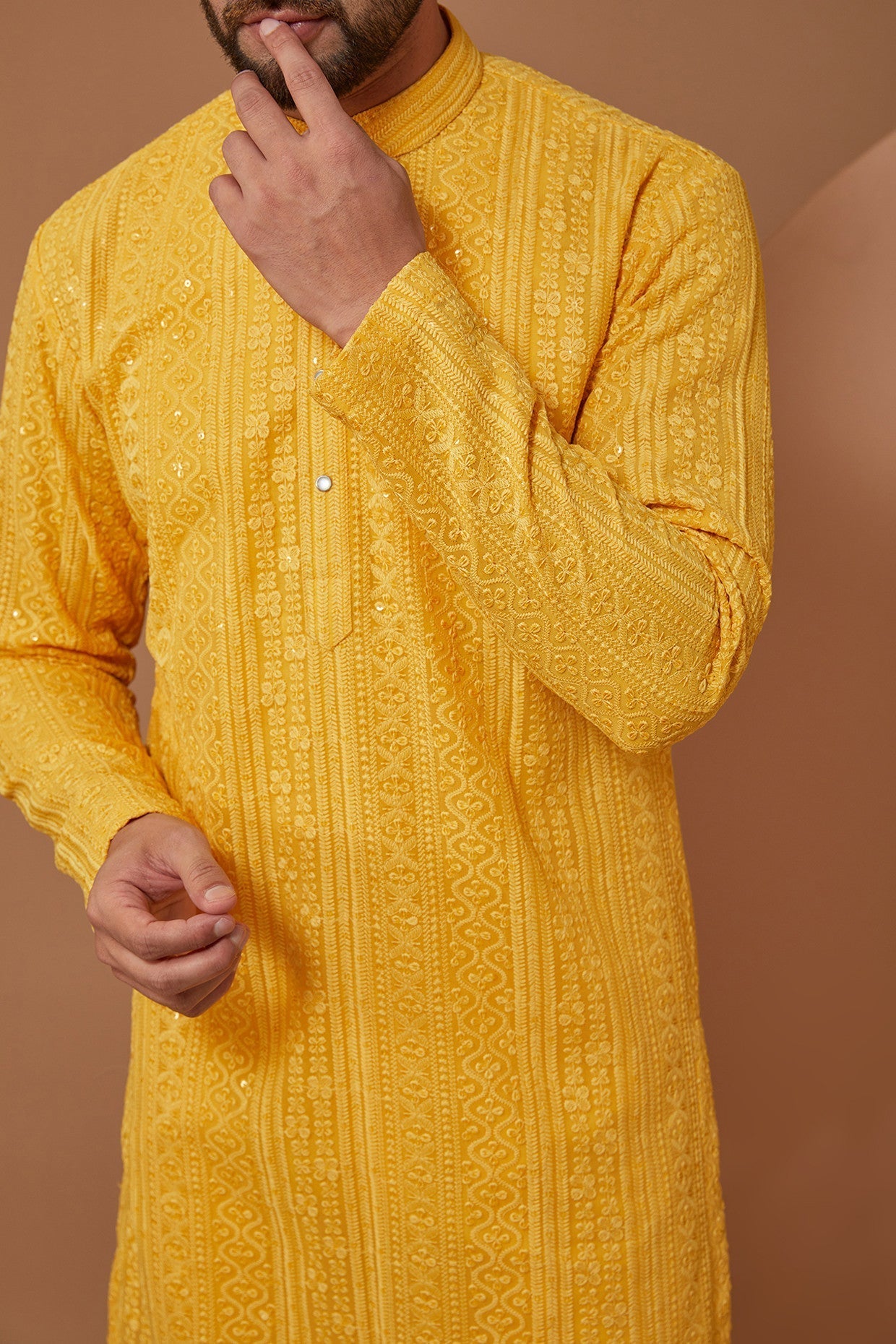 yellow chikankari kurta